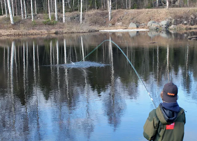 Jag fiskade vid Fasta och idag kändes det som när man fiskar lax, många på