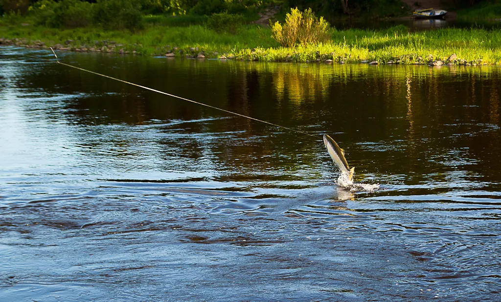 kan återigen börja pumpa in den starka fisken, och vinner meter efter meter. Snubblar